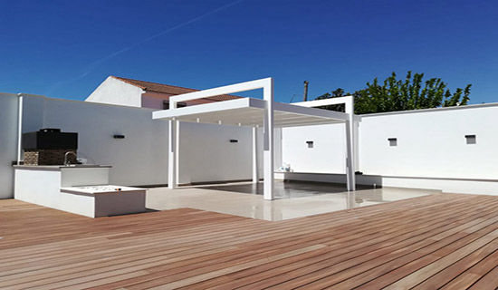 Todo lo necesario para cerrar su pergola o terraza en madera. Paredes, postes, techos.